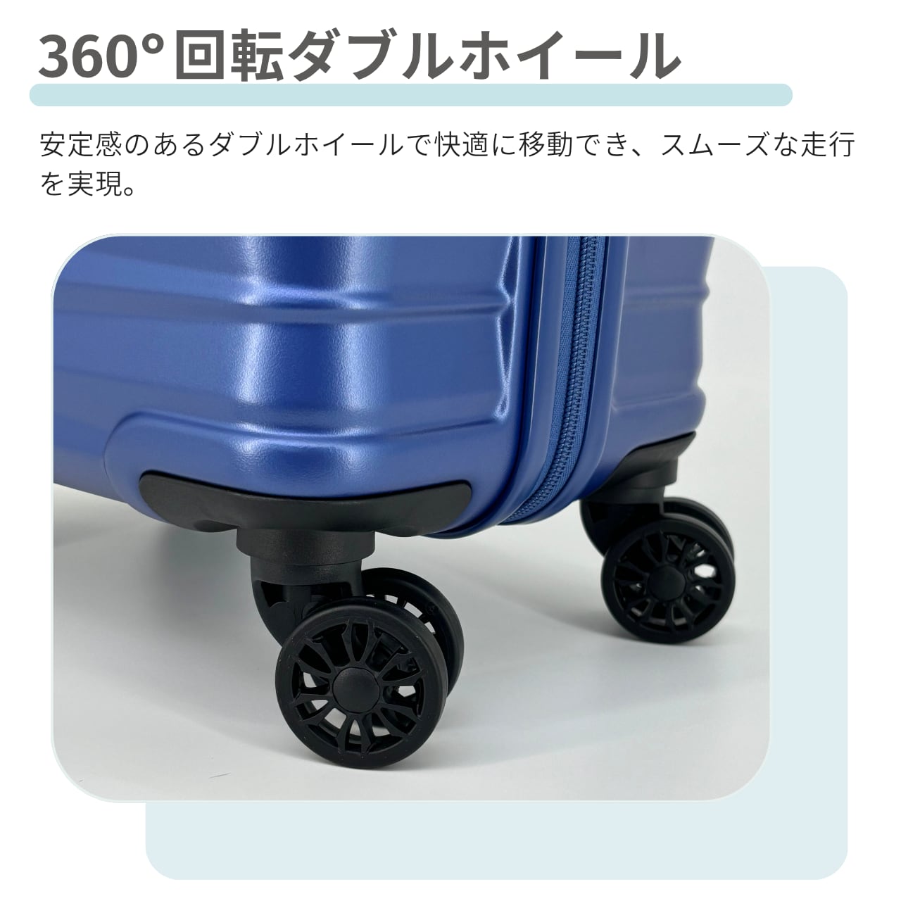 360°回転するダブルホイールでスムーズに移動でき、TSAロック搭載で海外旅行も安心。新幹線移動や修学旅行など、幅広いシーンで活躍します。