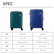 容量約35L・重量約2.6kgのコンパクトなキャリーケース。機内持ち込みに対応し、1~3泊程度の旅行や短期出張に最適です。
