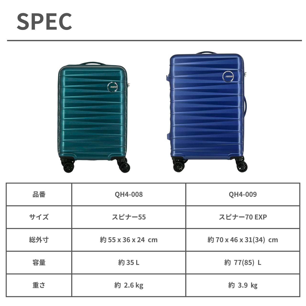 商品名:アメリカンツーリスター ブリンク スピナー55 Sサイズ QH4*008 American Tourister 機内持ち込み スーツケース 55㎝ 軽量