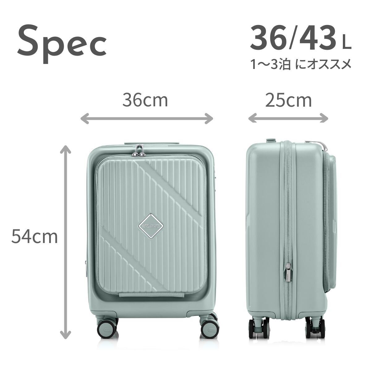 スピナー54は、1~3泊程度の国内旅行や短期出張、修学旅行にちょうど良い機内持ち込み対応サイズ。