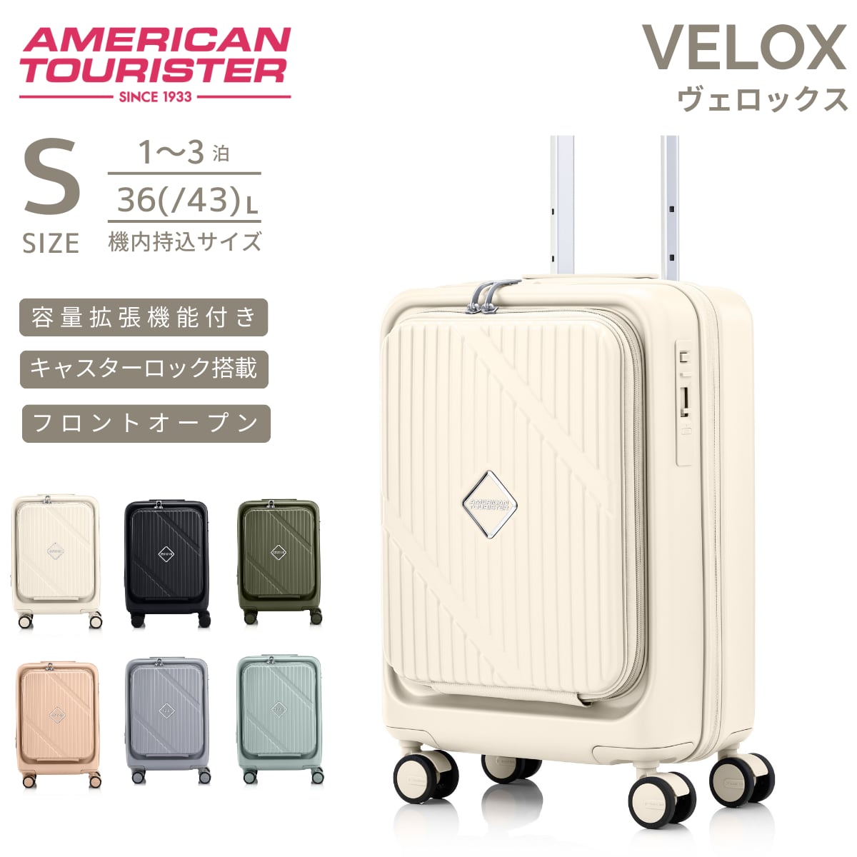 商品名:アメリカンツーリスター ヴェロックス スピナー54 Sサイズ スーツケース 機内持ち込み サムソナイト フロントオープン American Tourister VELOX
