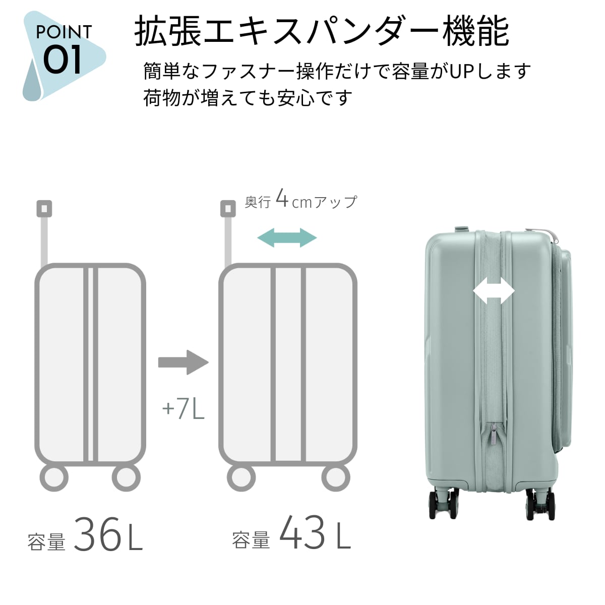 荷物が増えても安心のエキスパンダブル機能