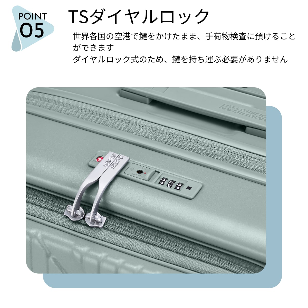 海外旅行にも対応する TSAダイヤルロック を搭載。