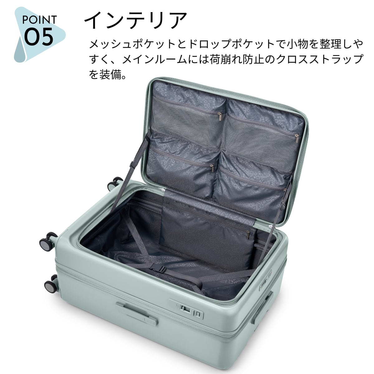 を配置。長期滞在分の衣類や小物も整理しやすく、効率的なパッキングが可能です。