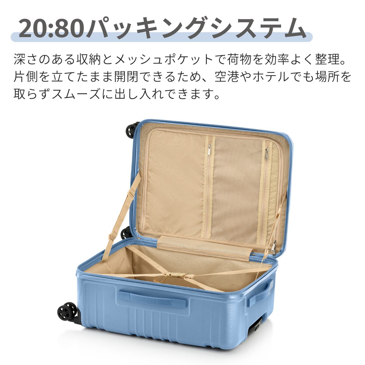 革新的な20:80パッキングシステムにより、大きな荷物から小物類まで効率よく収納でき、旅先での整理整頓をスムーズにサポートします。