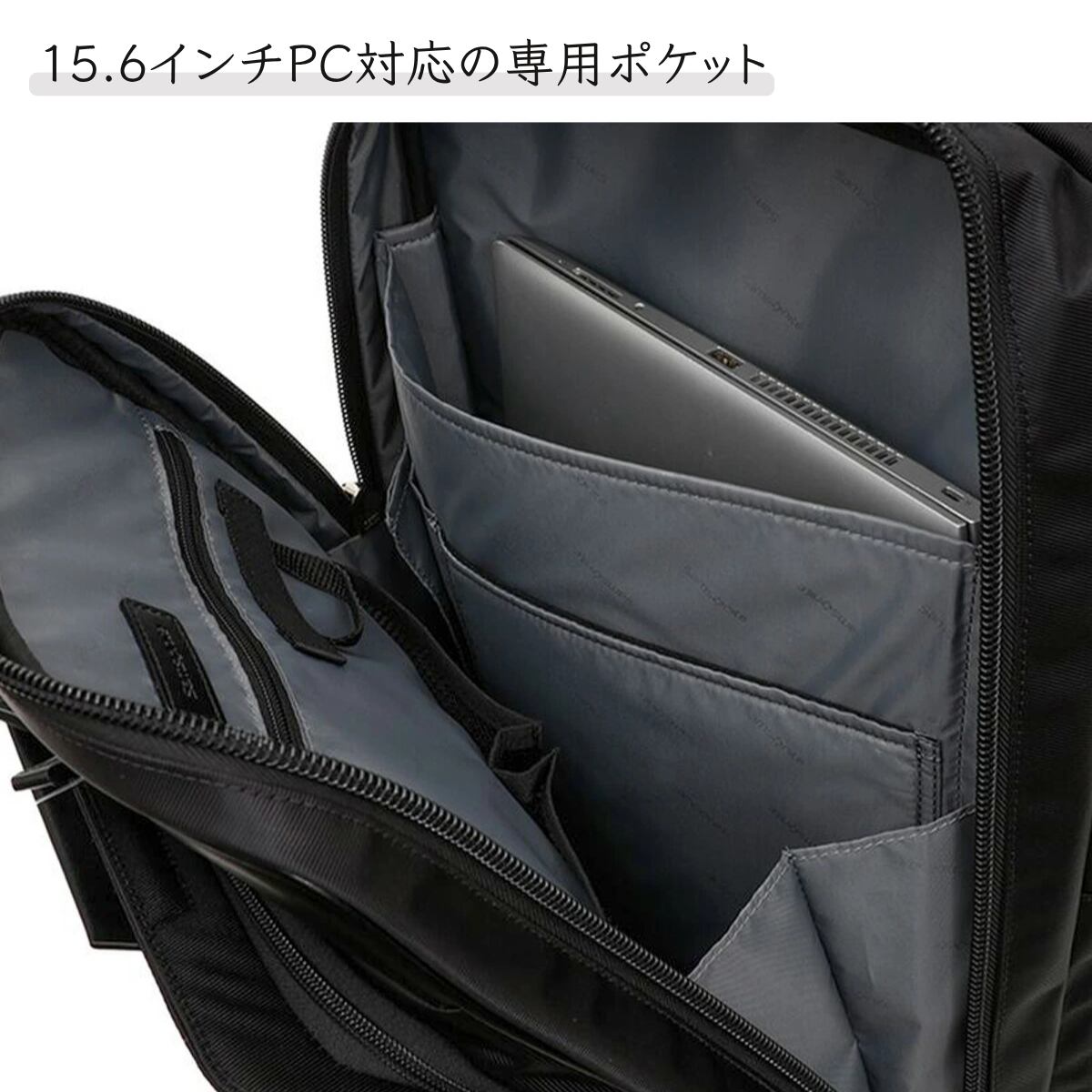 15.6インチまで対応し、ビジネス機器を安全に収納。