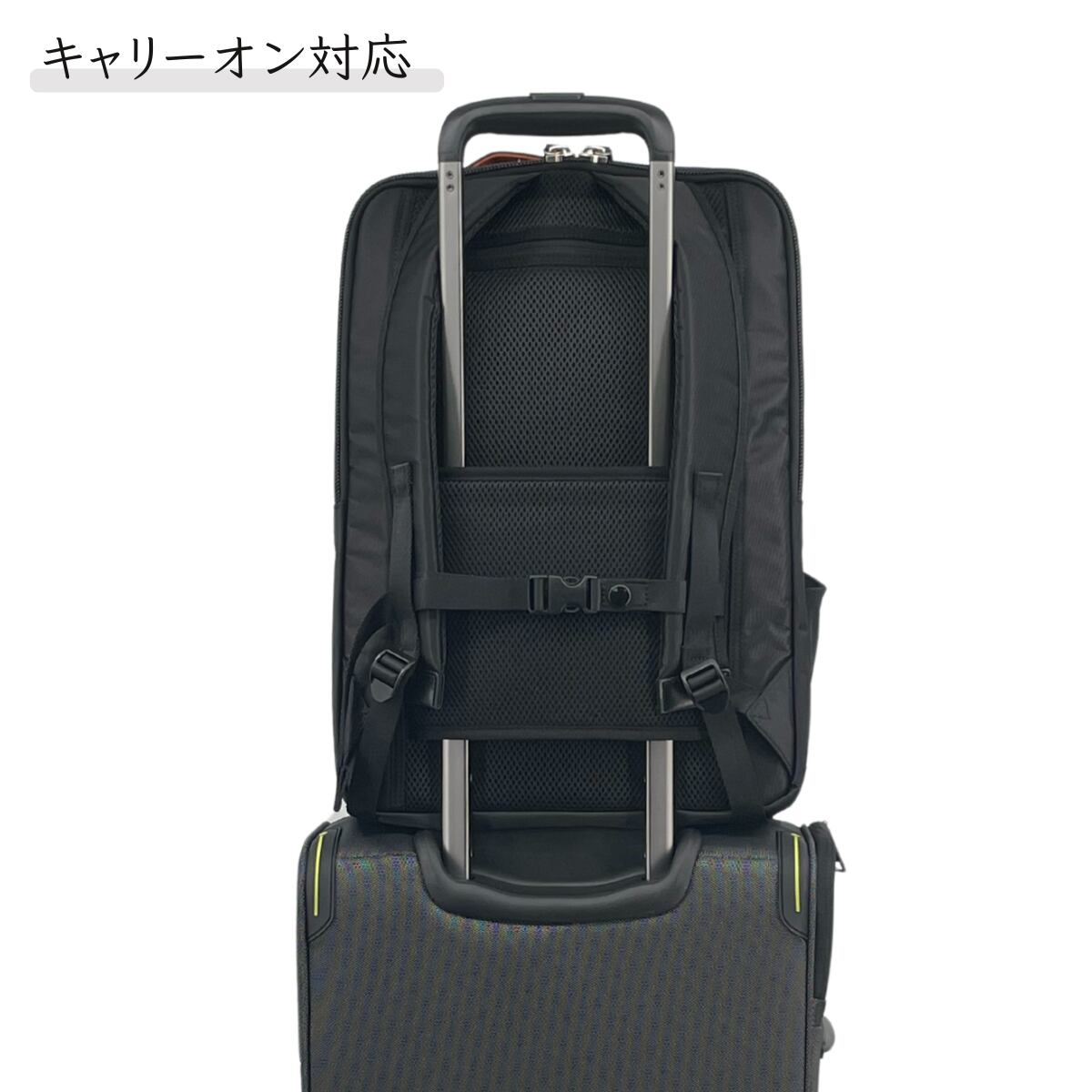 キャリーケースに固定でき、出張時の移動も快適。